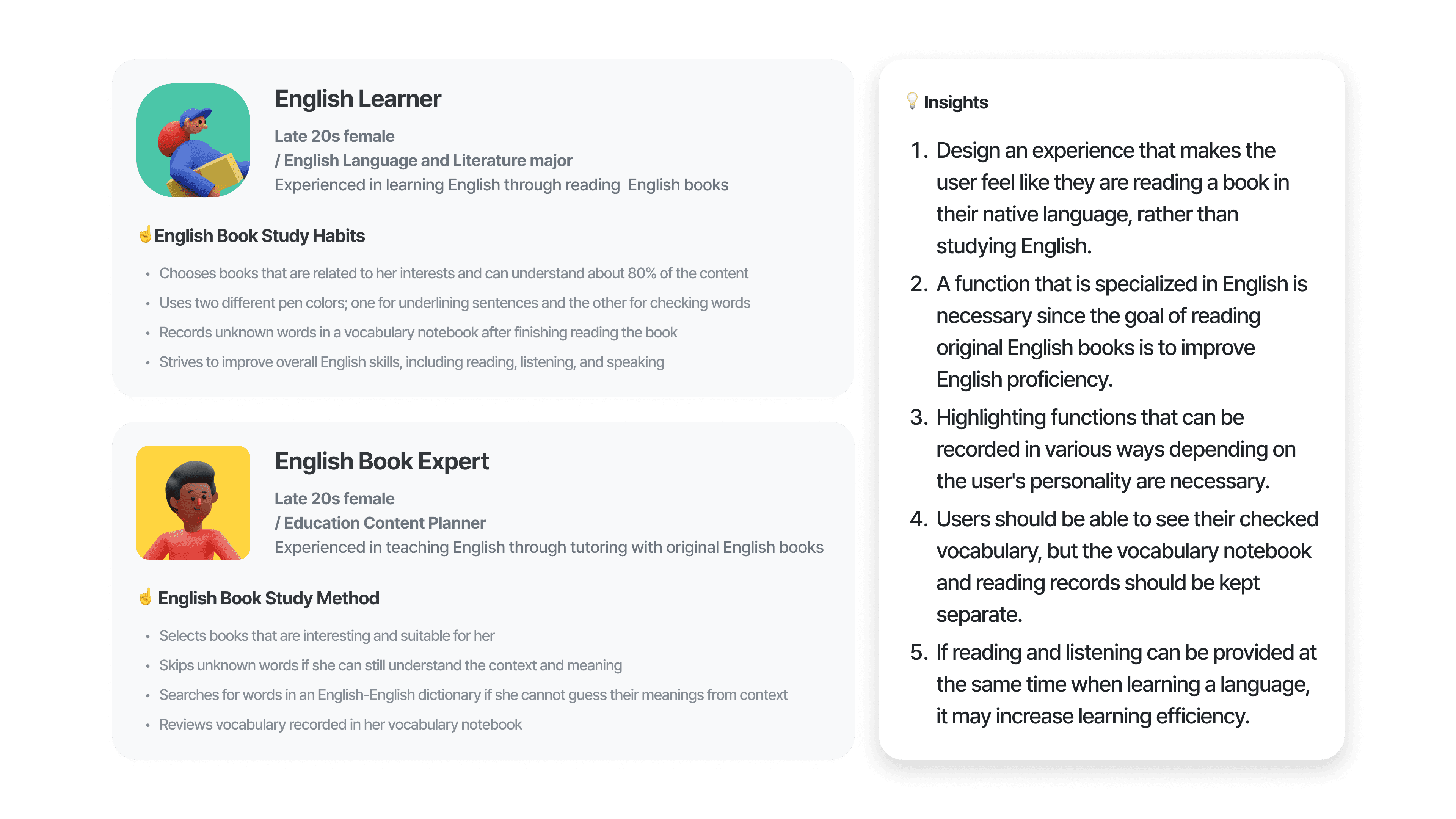 Through user interviews, I gained insights into learning behaviors.