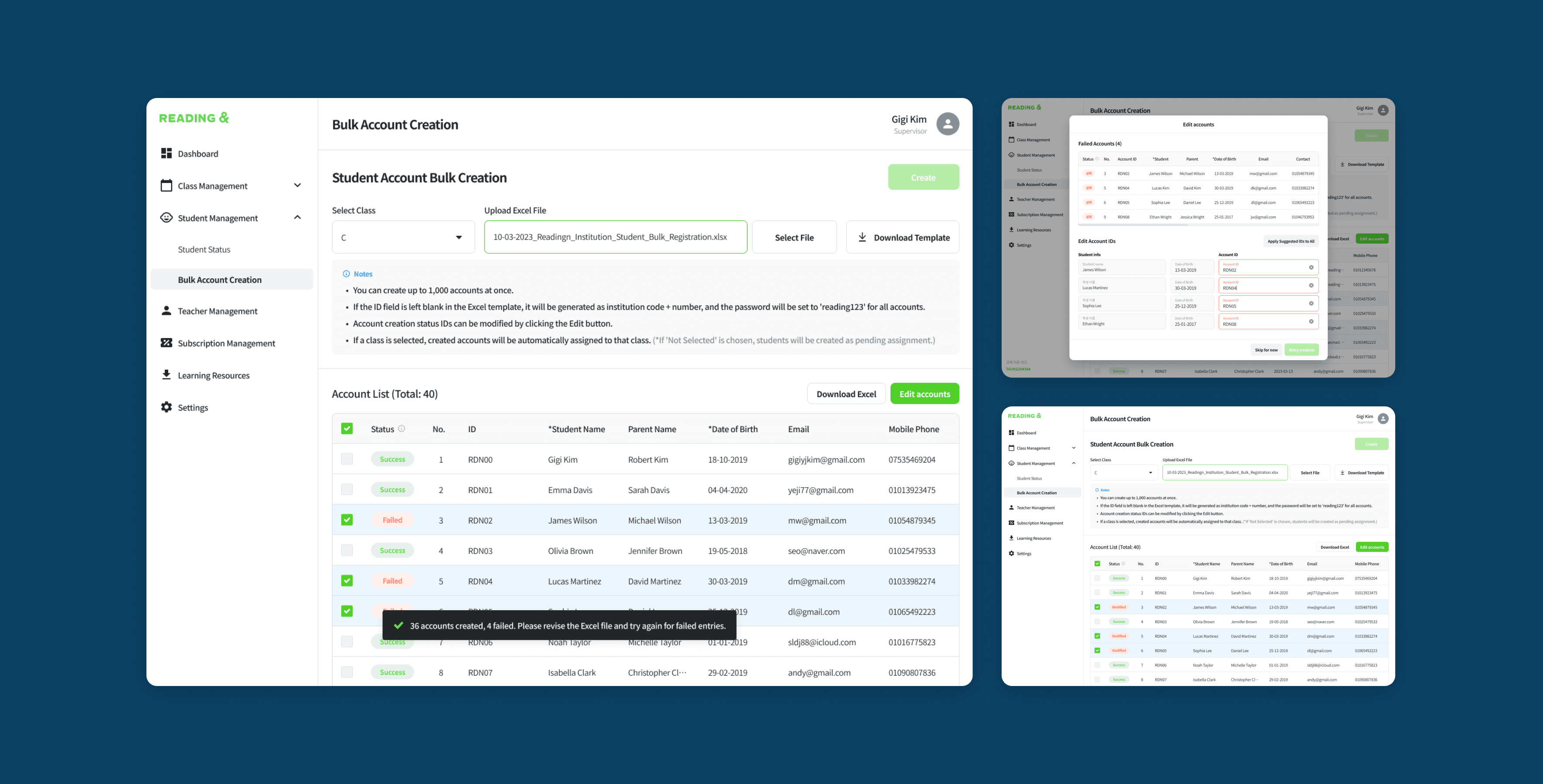 I led the development of a Learning Management System (LMS) for B2B English education institutions. As the lead Product Designer, I enhanced user convenience by streamlining complex administrative tasks and automating repetitive processes. Through user research, UX/UI design, and data collection processes, I helped create an intuitive LMS that enables efficient student management with improved productivity features.