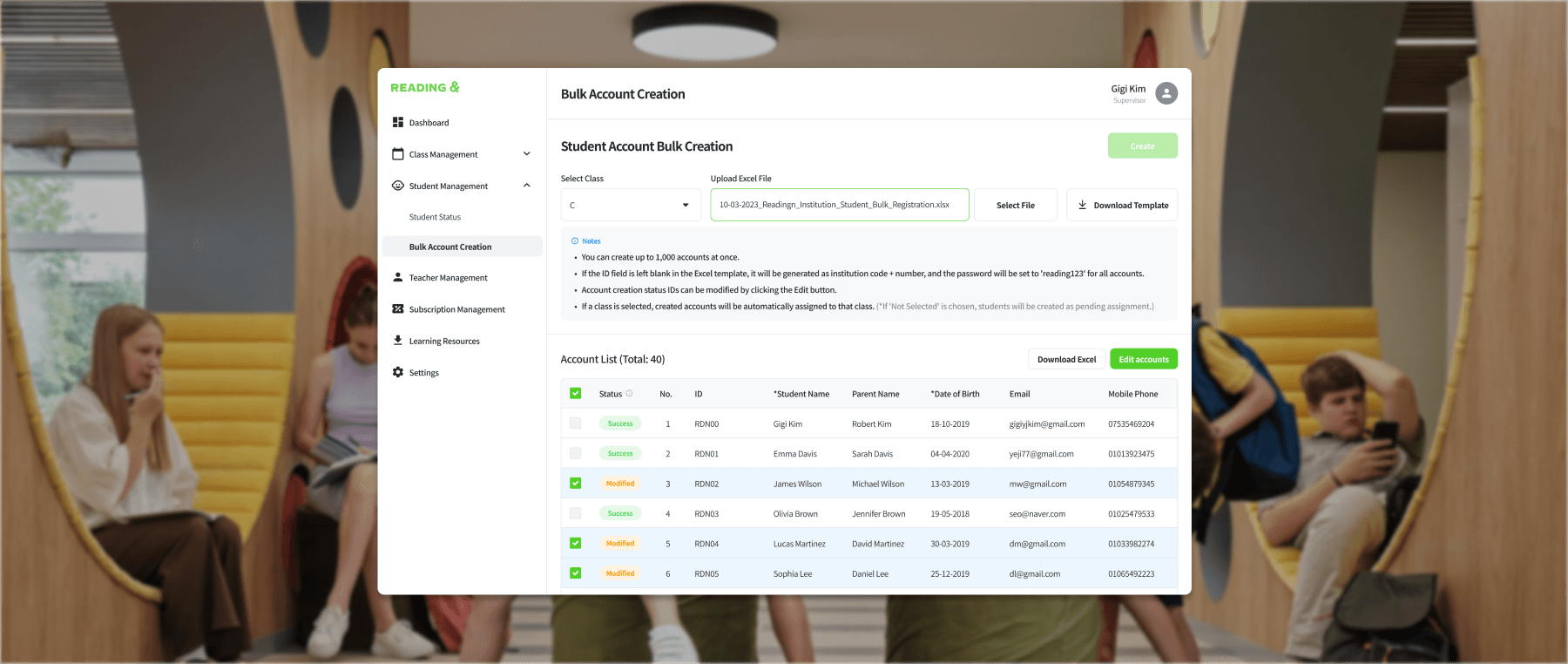 Provided institution operators with simplified bulk account creation functionality