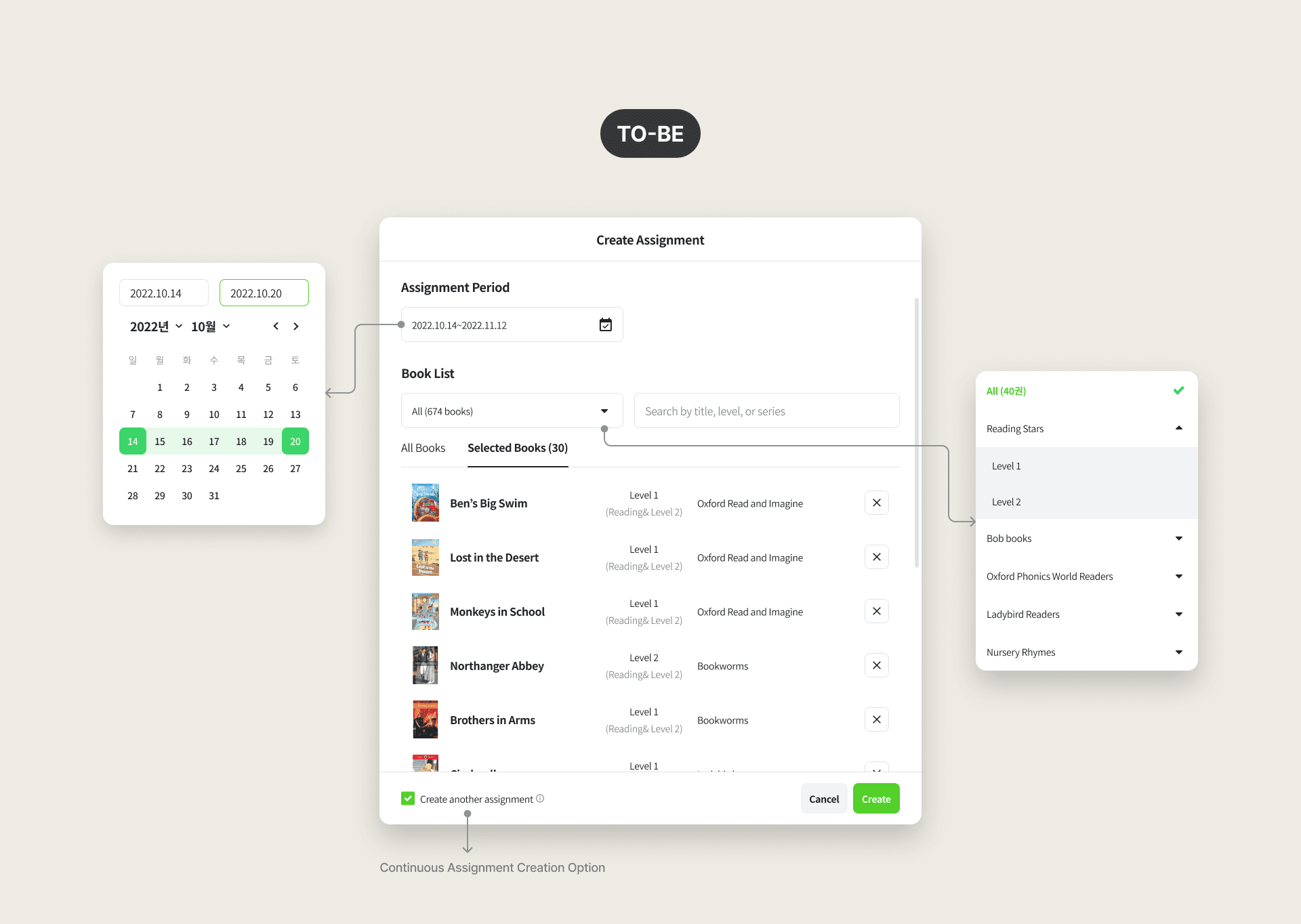 - Real-time assignment modification and updates without page transitionsAdded series-based book selection options