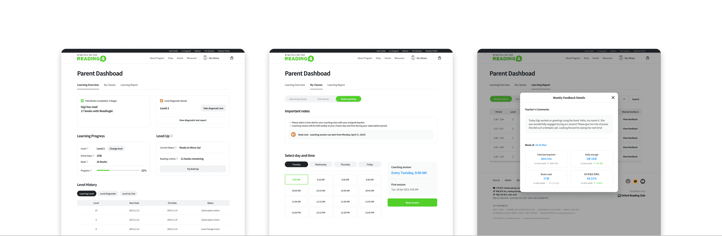 Without a separate parent portal, parents had to share their children's login screen. How about creating a unified page where parents can track and manage all learning-related progress?