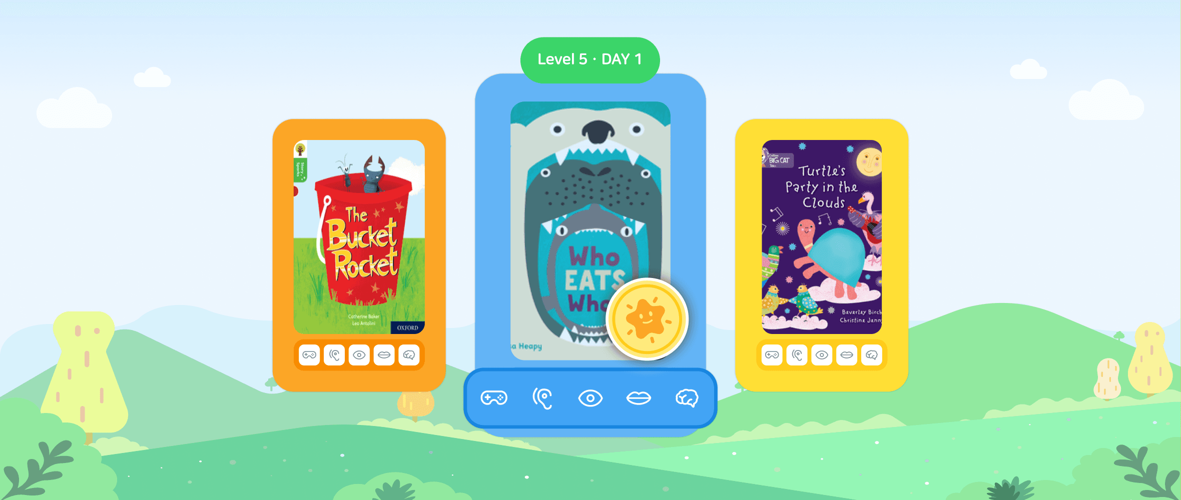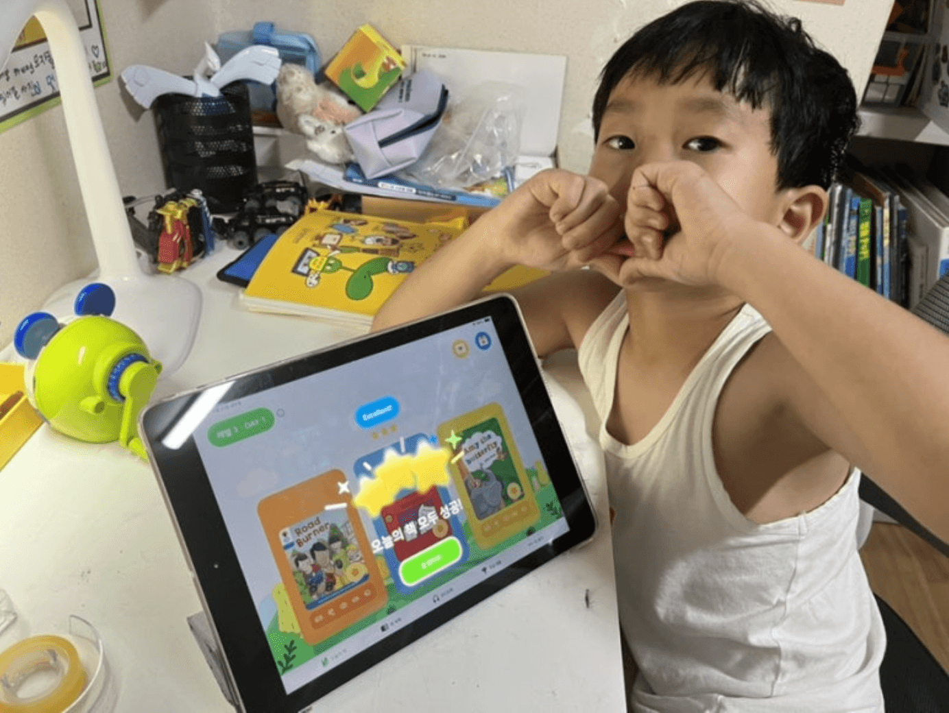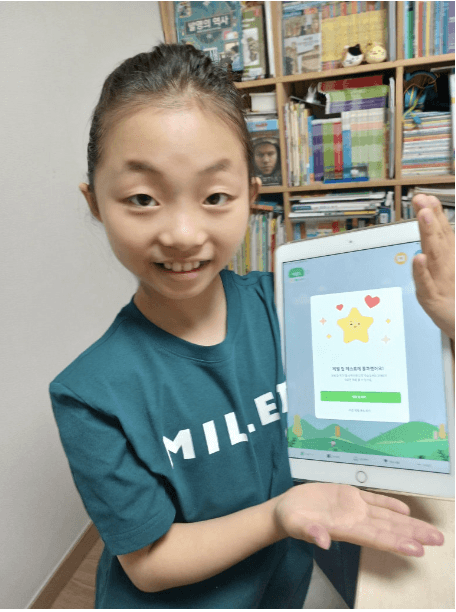 With Today's book, she gets star stamps after completing all 5 steps of Today's Book's three books. Working through all steps has notably improved their pronunciation. She's now motivated by their teacher's messages and can confidently read three books independently each day.