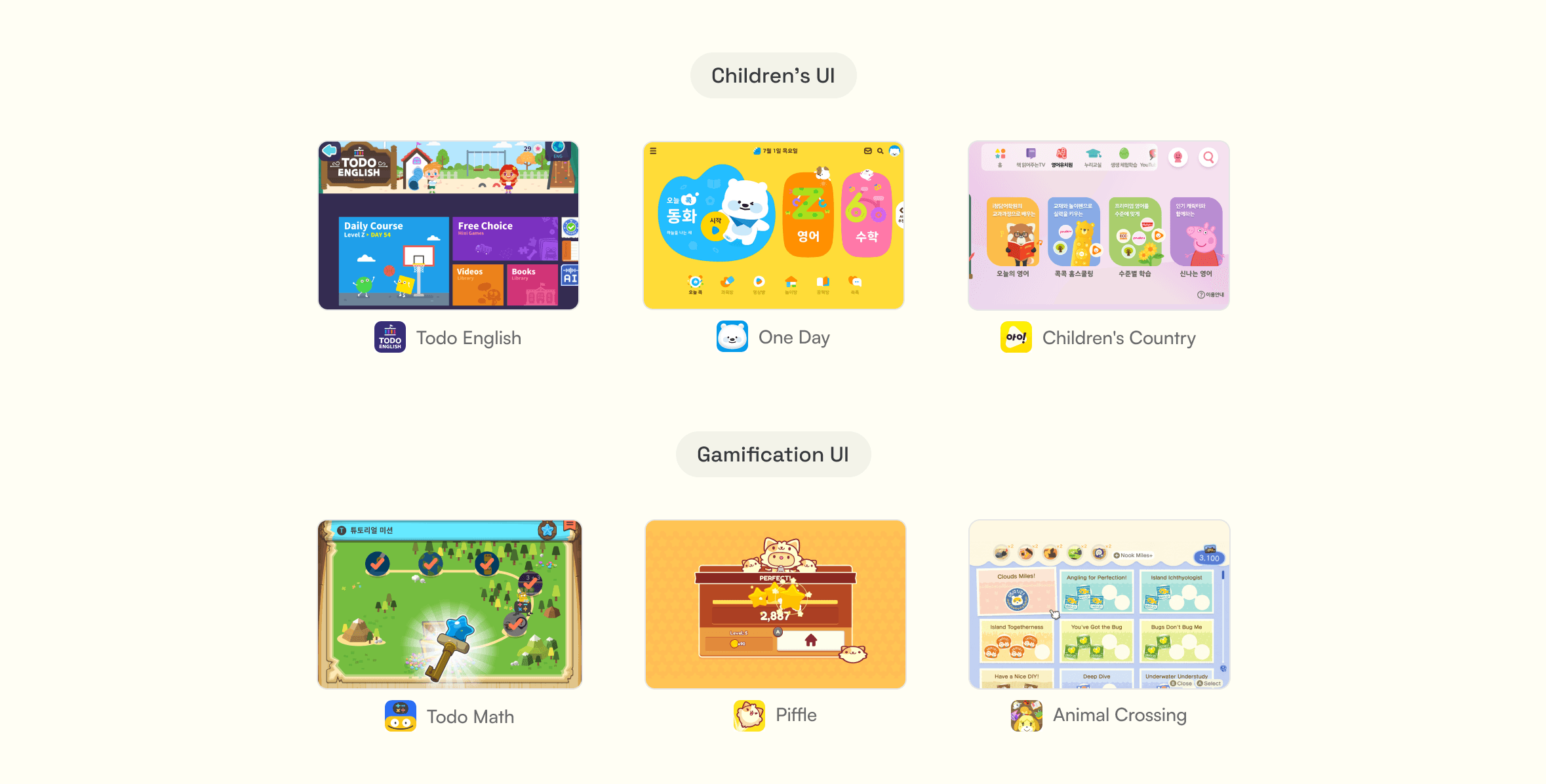 I conducted competitor research based on two criteria to analyse child-friendly UI/UX and gamification elements. The goal was to look for elements that children can use independently and find features that could be applied to learning.